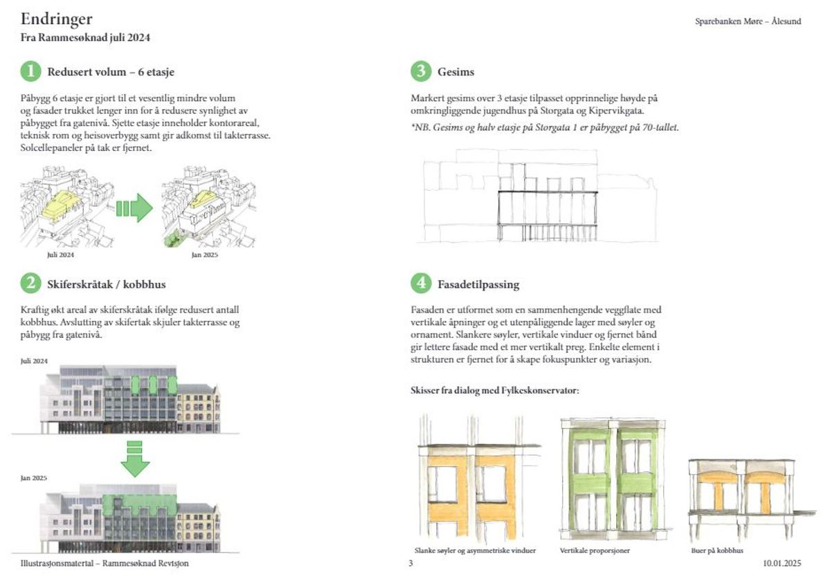 Sparebanken Møre søker om renovering av hovedkontoret i Ålesund sentrum. Et godt samarbeid med Fylkeskonservator og kommunen har gitt flere endringer i de opprinnelige skissene.